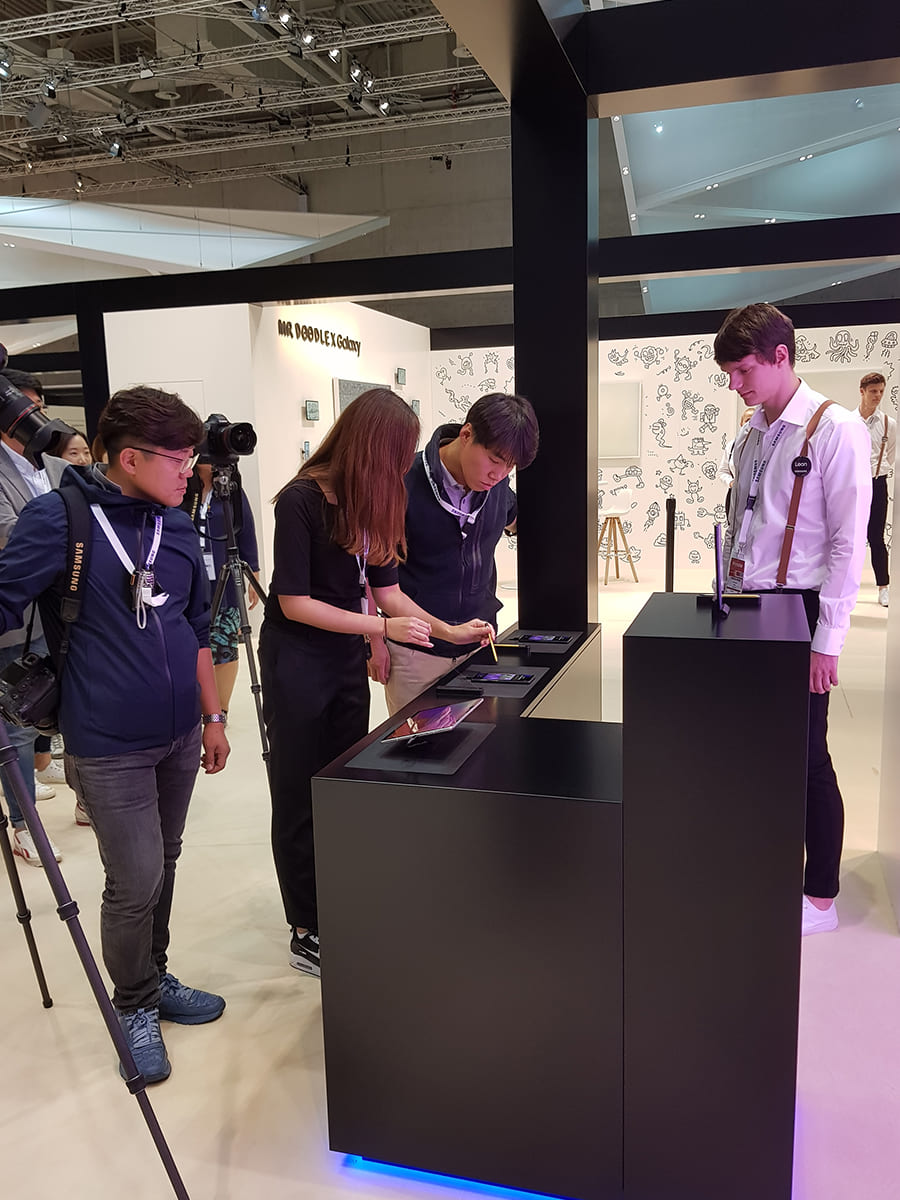 특히 Editing 어플리케이션 같은 경우에는 S-Pen의 API를 재분석하여 자체 제작한 어플리케이션의 톤&매너에 어울리는 형태로 재가공하여 적용하였고, 촬영용 노트9도 관람객이나 운영자가 직접 촬영을 하는 것이 아니라 노트9의 모션감지 촬영 기능 그리고 S-Pen 촬영 기능을 사용하여 새로운 노트9의 기능들을 관람객이 자연스럽게 체험할 수 있게 하였습니다.